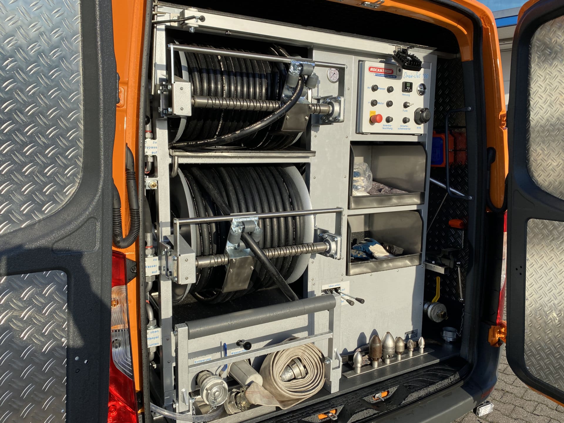 - Beseitigung von Verstopfungen in Schmutz-, Regenwasser– und Grundleitungen mittels elektromechanischer Fräsen oder Hochdruckreinigung mit 70 bis 270 bar Wasserdruck